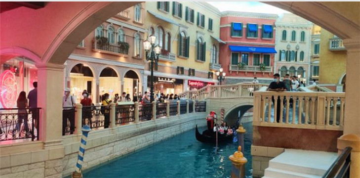 重点来咯,澳门的购物中心不仅多而且店铺都很多,免税店多到让你逛花眼,既可以自己买,还可以给家人朋友代购护肤品手表什么的,逛到你完全停不下来。像我入住的威尼斯人购物中心,旁边就有4个大型购物中心,分别是大运河购物中心、巴黎人购物中心、金沙广场以及四季名店。巴黎人购物中心和金沙广场每家商场都有超100家购物中心,大运河购物中心店铺更是有300多家,从鞋子到护肤品,你想要的全部都有。四季名店则是奢侈品的天下,多逛逛你就会收获一些“便宜”的大牌,完全正品保值。而且大运河购物中心的人造天幕也是超级仿真,风景一绝哦,两旁威尼斯风格的店铺也很多,穿梭在其中,真的是美的刺激了我的消费,里面有好多奢侈品品牌,也有受到深受喜爱的平民品牌。另外还有药店、糕点店、小吃店……是购物者的天堂。偶尔还能看到小丑表演或是坐贡多拉船的游客,划船的外国人还会深情的唱歌哦!