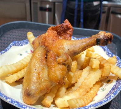 炸鸡薯条,鸡肉炸的还不错,我觉得要是再放点孜然就更好吃了!