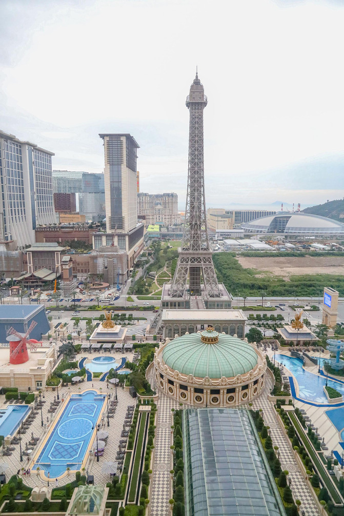 巴黎铁塔有27层的高度,来到塔顶,能看到巴黎人酒店的全貌,那特别的设计有一种巴黎艺术宫殿的味道。而且在这里,还能俯瞰大半个氹仔的风景,在这里停下脚步,慢慢欣赏属于氹仔的繁华,如果时间来到傍晚,更能在这里看夕阳西下,都是非常美好的一种体验。