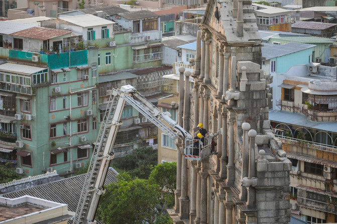 大三巴其实是澳门圣保禄教堂遗址,这座建成于1580年的教堂历经大火,见证过岁月的沧桑,如今只剩下一面正面的墙体。但这面墙体,仍旧能看到那些精致的雕塑,在澳门的老城,有着一种岁月变迁自巍然不动的风味。