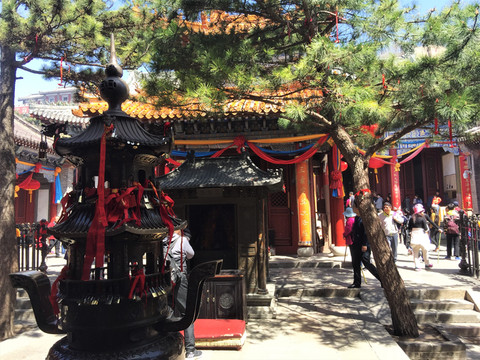 泰山景区有好几个入口游览线路略有不同,我们是从红门宫这边进去的,考虑身体状况选择在天外村游人中心乘坐观光车上到中天门单程30元/人,我们往返都坐了也可以买单程,在中天门乘坐索道到南天门往返200元/人,之后徒步走到天街再登玉皇顶。这一段中途有碧霞祠为游客免费准备了香进门可以先取了,祠里几处祈福全随己愿。现在景区有了观光车和索道省力省时很多了,能根据自己的具体情况任意选择组合,以前挑战体力看到的原始景致更多一些,如今商业化的跟进在体验上就有得有失了。