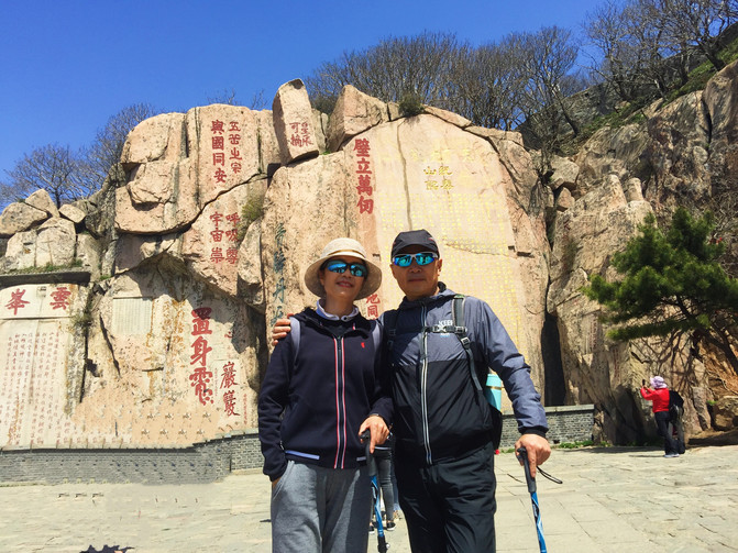 5月初北方的山还是绿黄半未均,但温度很爽登山正适宜。用半天的时间了一心愿我登上泰山了,与兄长们一起凭览众山小更是心旷神怡,大哥嫂快奔70岁了尚且有劲头儿一直相随,亲情的力量有时候放大的超乎你的想象。这第一站让我们提振了不少信心,还要继续往前走,远方有景在江南。