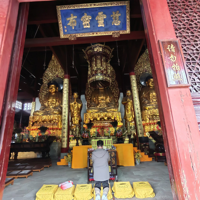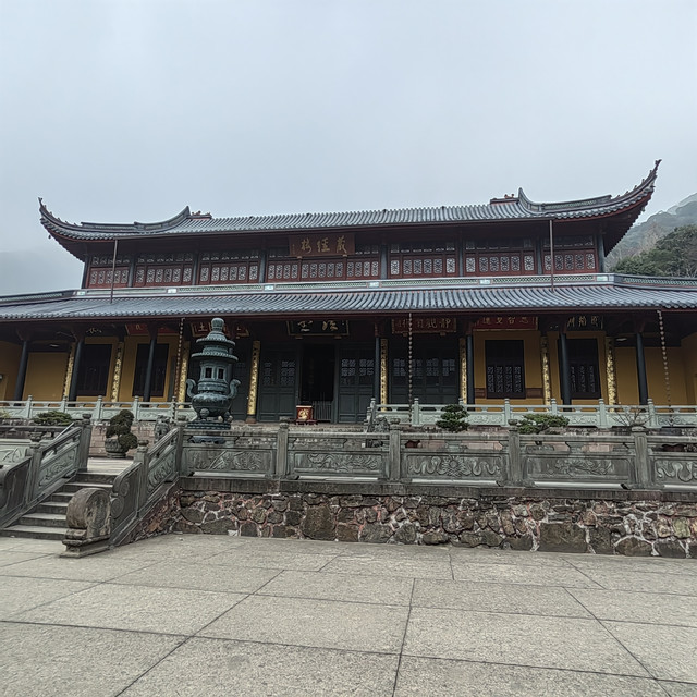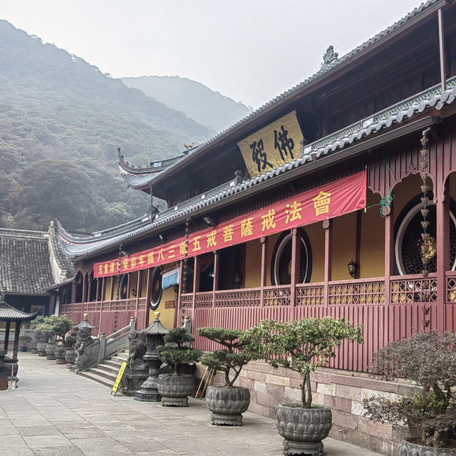 浏览玩阿育王寺坐公交车来到10公里外的,宁波市鄞州区东吴镇天童村天童寺,寺院坐落在层峦叠嶂的太白山下,“群峰抱一寺,一寺镇群峰”,东、西、北三方有六峰簇拥。天童寺始建于西晋永康元年(公元300年)至今已有1700多年的历史,全寺占地面积7.64万余平方米,建筑面积达3.88万余平方米,有殿、堂、楼、阁、轩、寮、居30余个计999间。天童寺几度兴毁现存规模,基本上保持明朝格局,寺宇布局严谨,结构精致,主次分明。