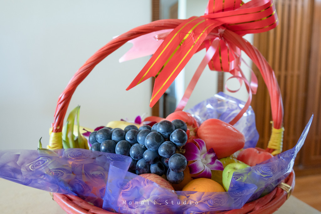为了欢迎我们的到来,酒店服务生还给准备了果篮,是的,不是几块水果的那种果盘,是超级大的果篮哦!各类新鲜水果,很是用心。