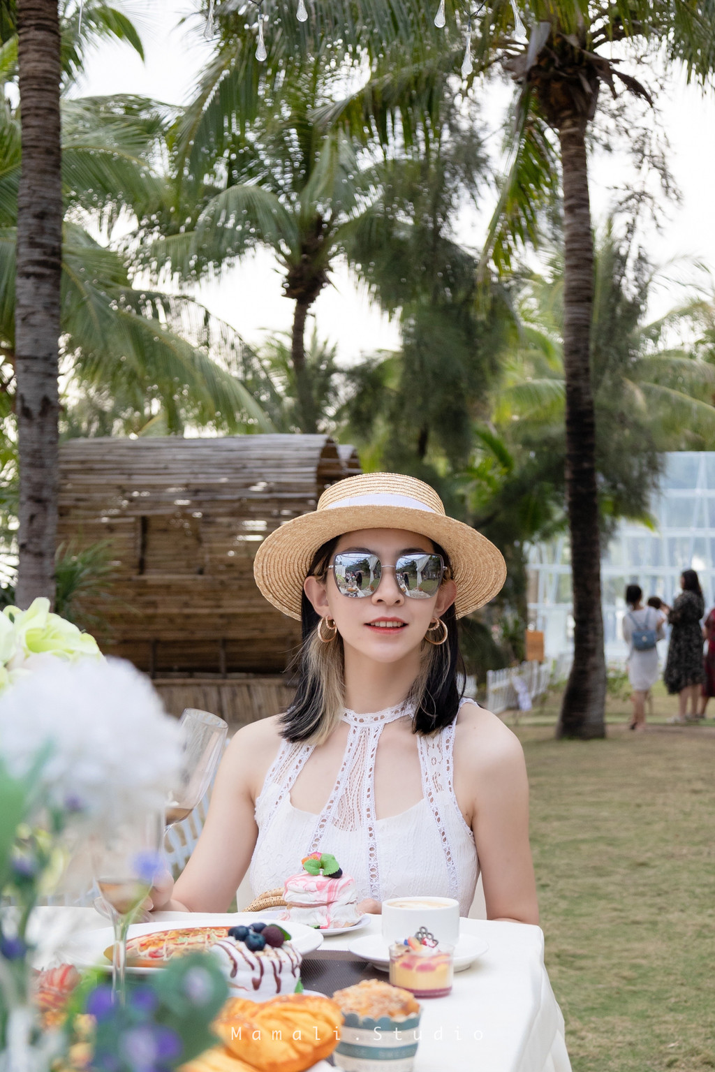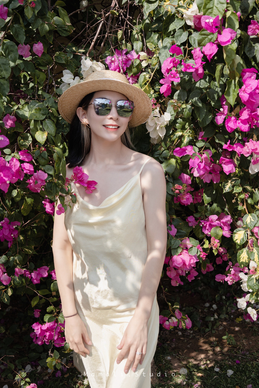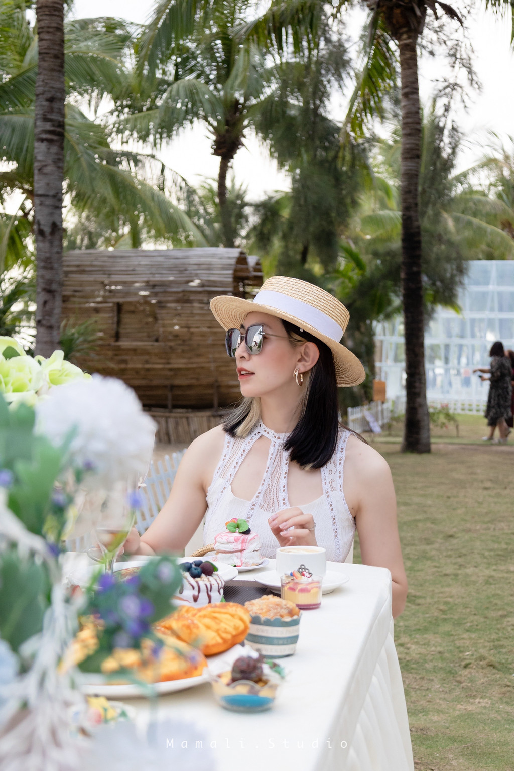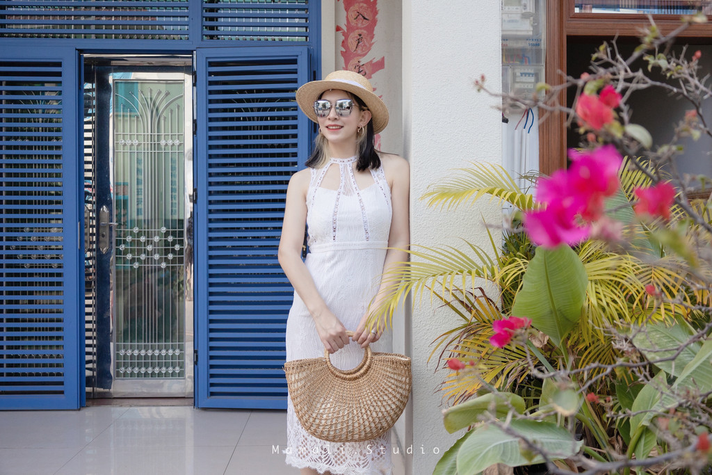 带着遮阳帽穿着吊带裙,不用刻意摆pose,往那一站,随后一拍,就美的很!