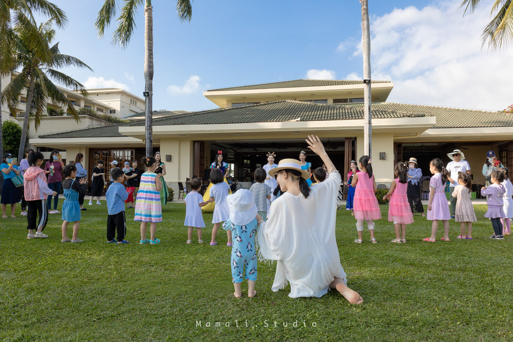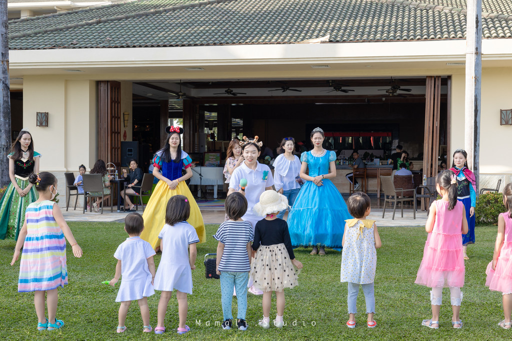 带着宝宝参加酒店的活动,和其他小朋友一起分享草坪上的快乐。