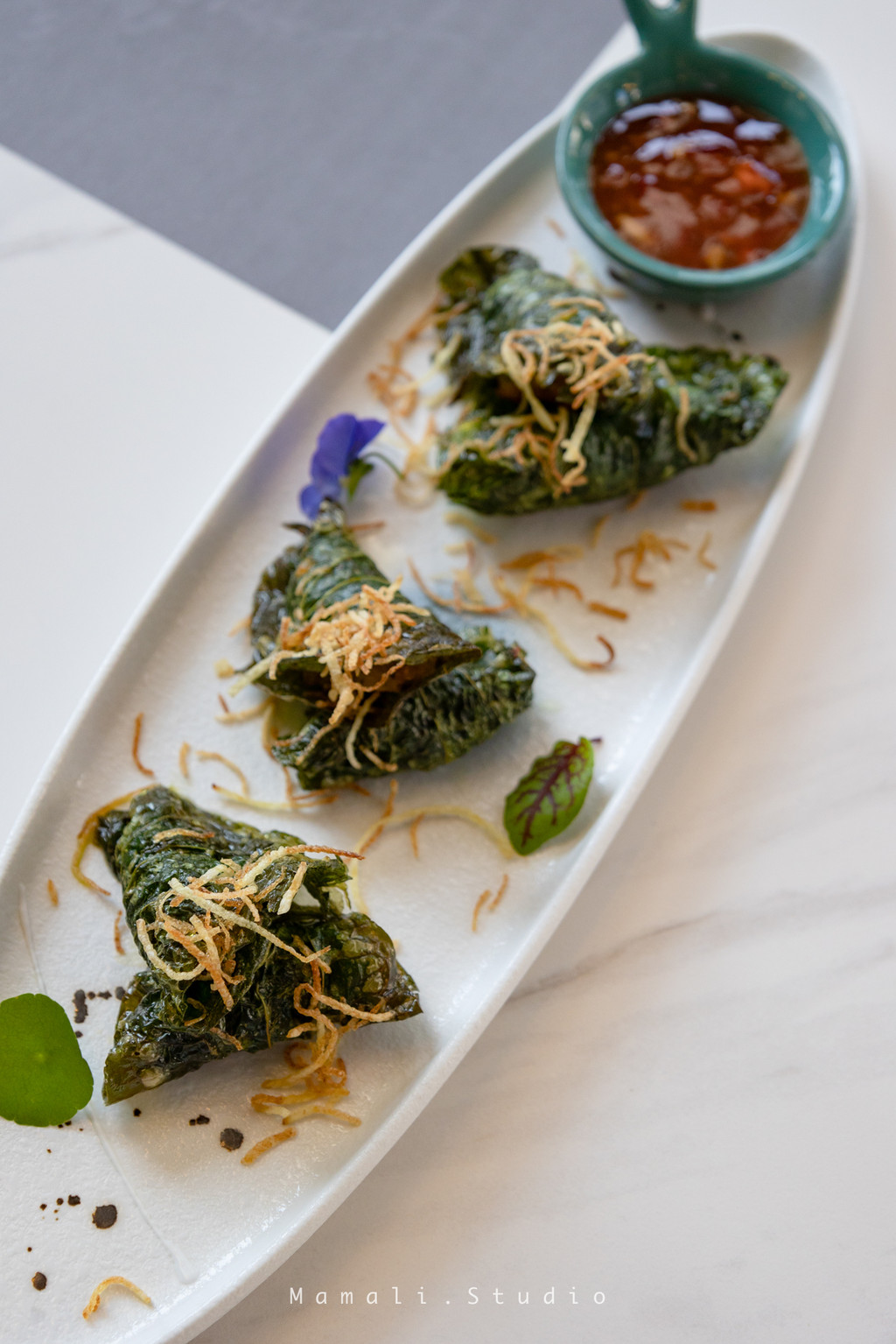 推荐其他几道菜,捞叶虾饼。这个虾饼炸的很好吃,配着酥酥脆脆的叶子一块吃,感觉挺有特色,也算是他们家的一道特色菜。