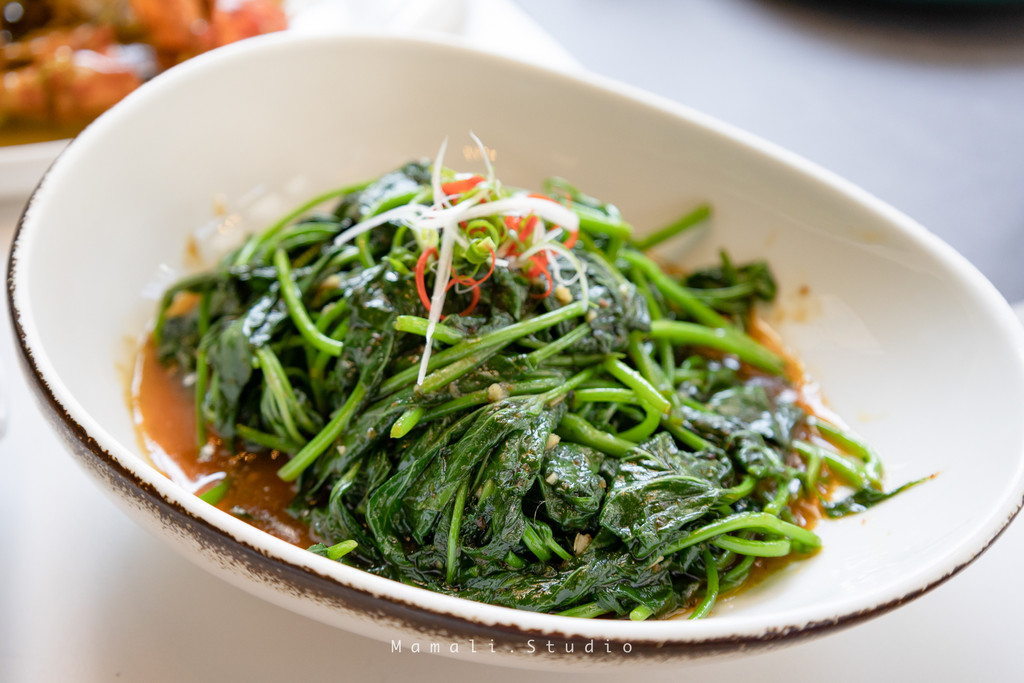 自制虾酱地瓜叶。对于喜欢吃地瓜叶的我来说,这个很对我的胃口。海南的必吃蔬菜地瓜叶,厨师烧的火候刚刚好,虾酱的炒法绝了,很入味!