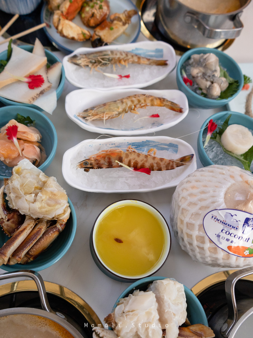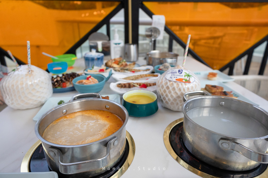 这是我吃过的口味超正的椰子鸡,他家选用的是走地的文昌鸡,肉质非常鲜嫩。锅底有三种口味可选,推荐原味椰子鸡汤,煮出来的鸡肉汤带着清香椰子味,先喝汤后吃肉大大的满足。用这汤再刷丸子、滑类、菌菇类口味赞爆。灵魂蘸料也要搞一碗哦!店员小姐姐亲自给我配的。蒜末➕朝天椒➕葱末➕香菜➕青橘➕本地酱油的王炸组合,外表看起来平平无奇,但是这一锅肉、菜,沾上它以后才拥有了灵魂!好吃到我连吃了两碗!