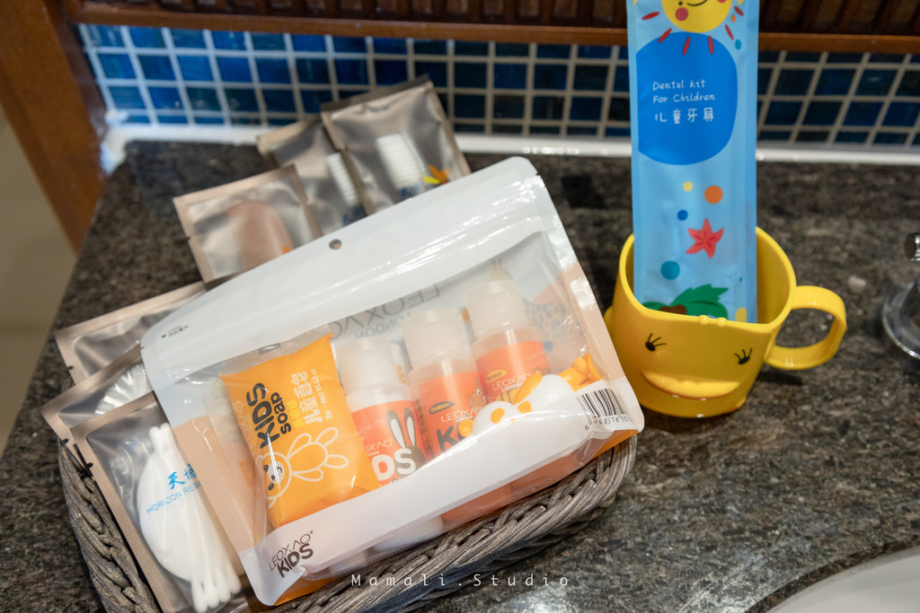 房间还专门备有儿童拖鞋、浴袍、牙刷等一系列儿童用品,每一个都萌萌哒。