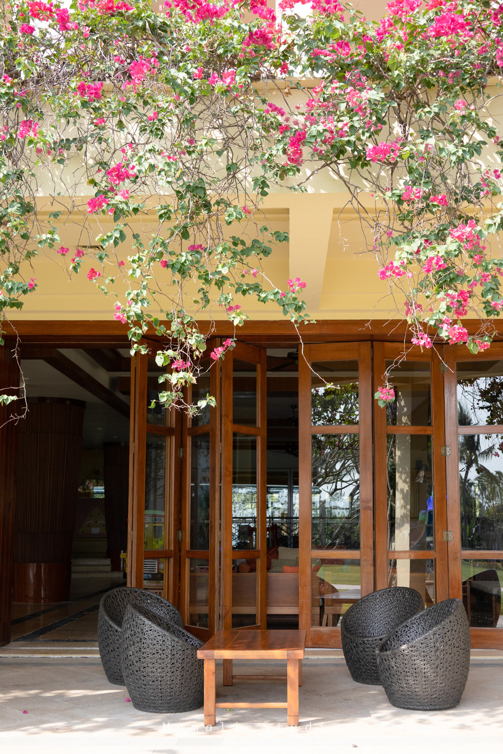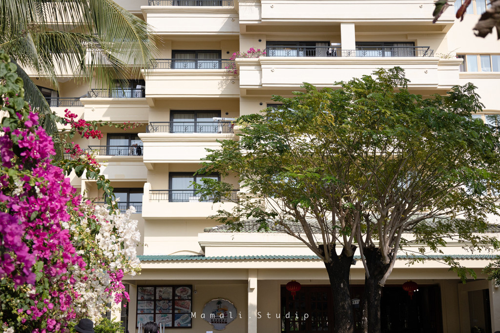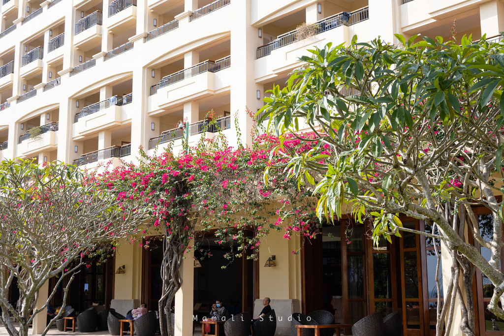 我尤其喜欢酒店大堂前面的那片三角梅,开的真是好看,配着略显古朴的藤椅,自成一幅风景画。