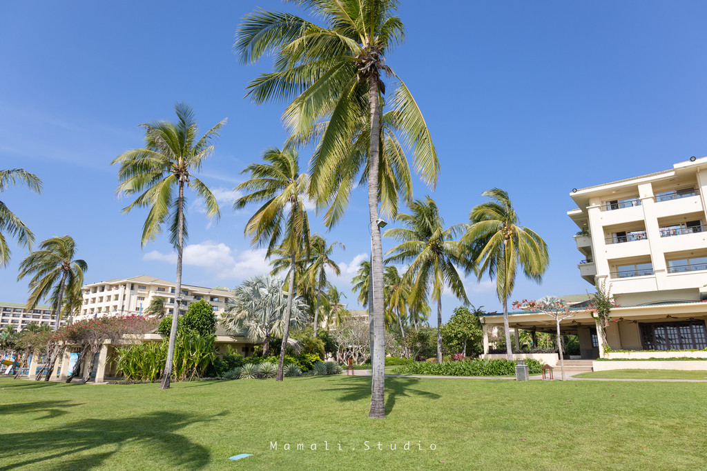 天域度假酒店的园林非常棒,热带植物丰富,草木打理的也非常好,我们尤其喜欢酒店大堂通往海边的那块草坪,青草悠悠,赤着脚奔跑非常舒服。