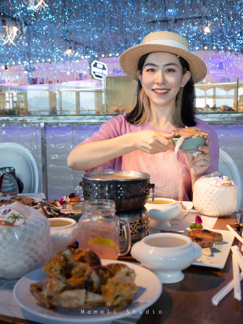 锵锵蟹的小院子可太美了!温馨又浪漫!配合海岛主题,有清新自然的装饰,也有小而美的绿植,户外就餐区很适合家庭聚餐和情侣打卡。
