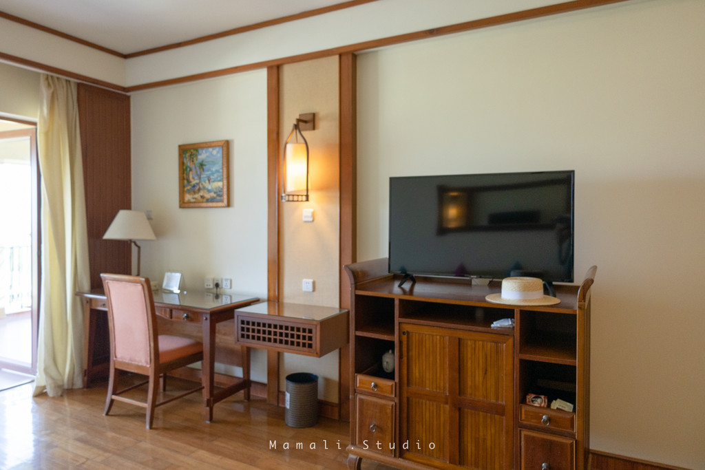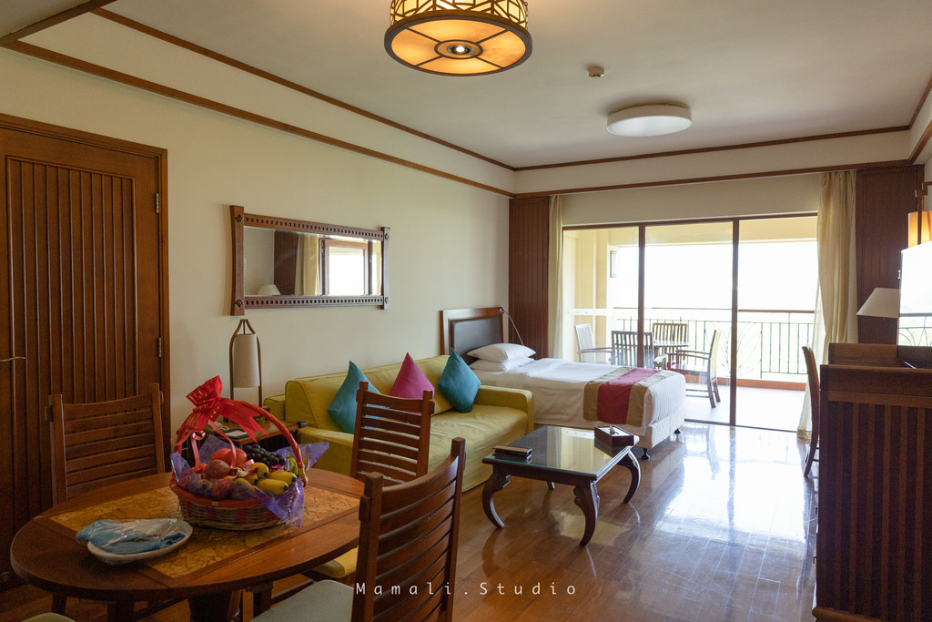 这套房间的面积非常大,客房的装饰低调而不失典雅,明亮通风,打开阳台门就有轻轻柔柔的海风吹过来,非常舒服。
