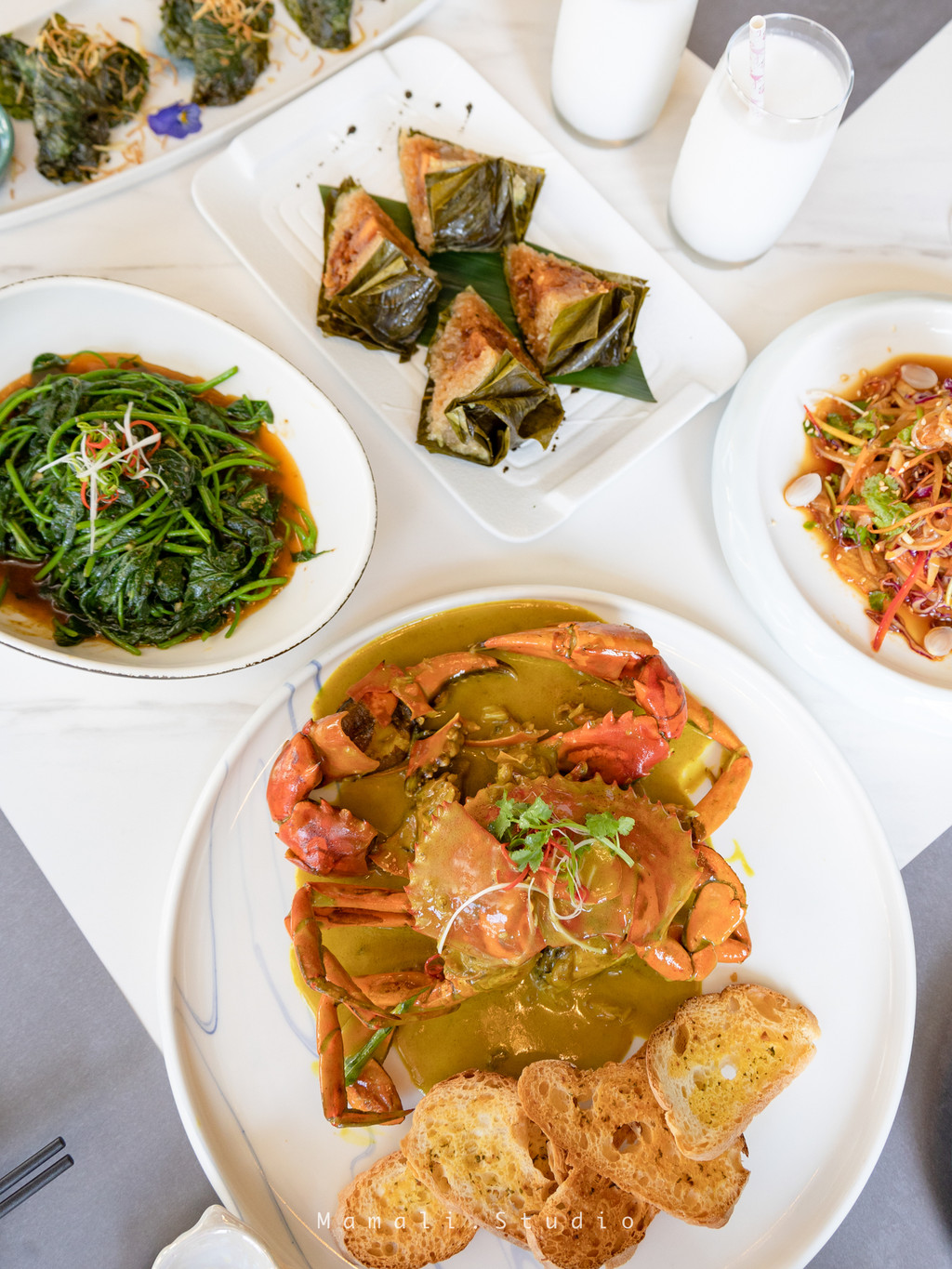 推荐招牌蟹,有胡辣炒蟹/辣椒炒蟹/咸蛋黄炒蟹/咖喱炒蟹。我们选了咖喱味的炒蟹,蟹肉很厚,咖喱入味刚刚好,最美味的是面包蘸蟹黄酱吃!可太好吃了!其他的菜品也可以搭配着点,套餐超值。