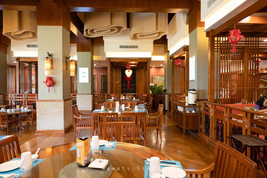 这家椰苑中餐厅装修的挺古朴的,也有几分异域风情,给人满满都度假感。