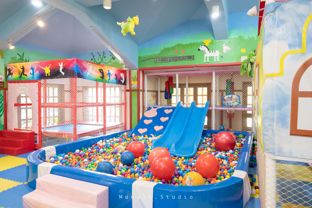 儿童活动中心游乐设施种类繁多,整体以彩色为主,给人视觉上的喜悦感。