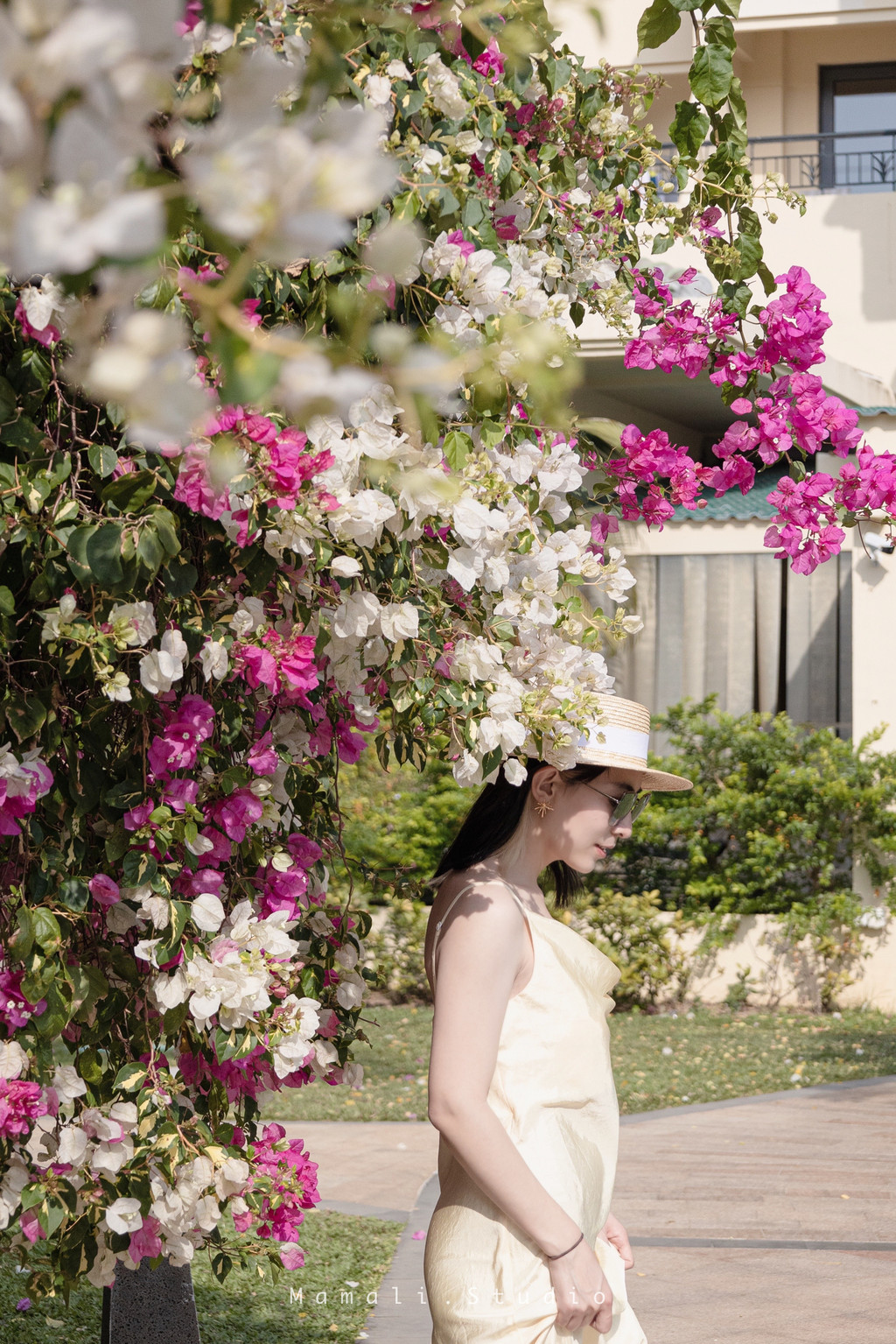 还有一处超级出片的地方在儿童俱乐部后面,是更大一片三角梅,多种颜色,光是红色的就分成了不同色调的红,还有比较少见的白色,这里的是好大的一片,攀枝错节的自由生长了很多年,如今三角梅盛开,呈现处令人震撼的野生之美。