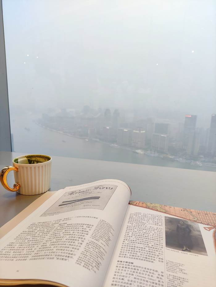 从这里可以俯瞰黄浦江, 景色很是好看。可惜我们去的那时候有点雾霾,观景效果稍微差了一些。