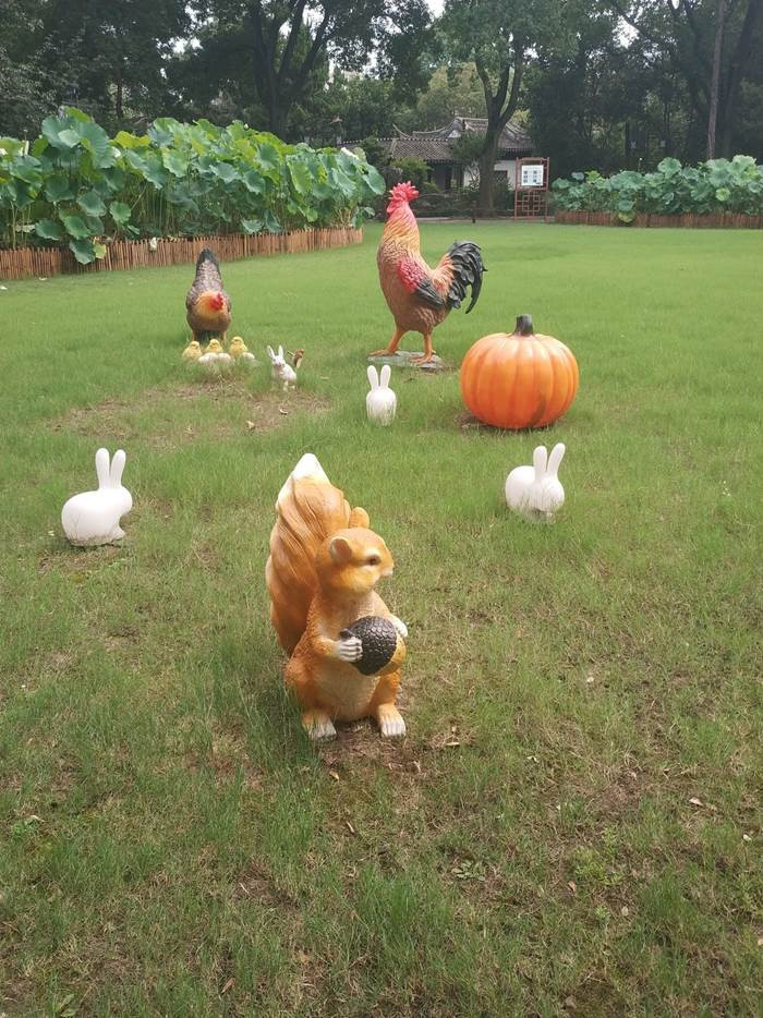 院子里面的雕塑太可爱了。每个小动物都还有动作,特别俏皮。