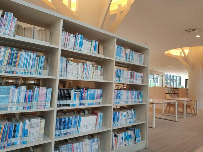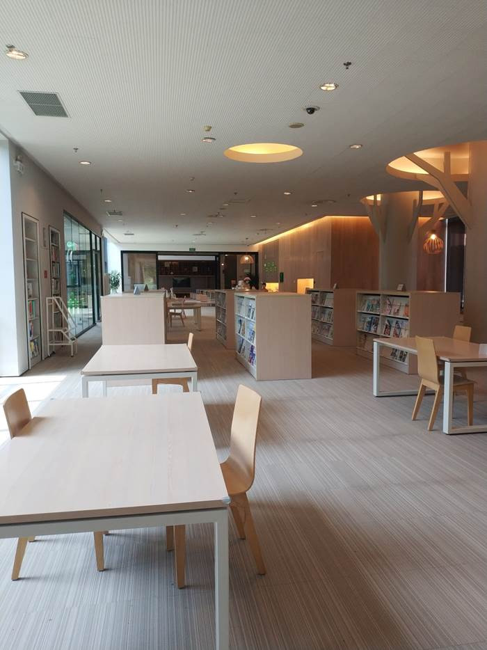图书馆场地很大。不管是室内室外都很好看。学习桌旁几乎没有人,大概因为不是周末吧,来这里的人不多。