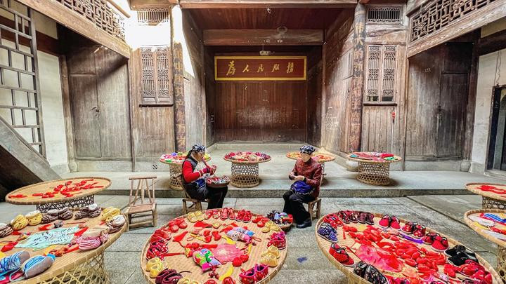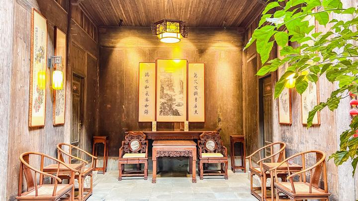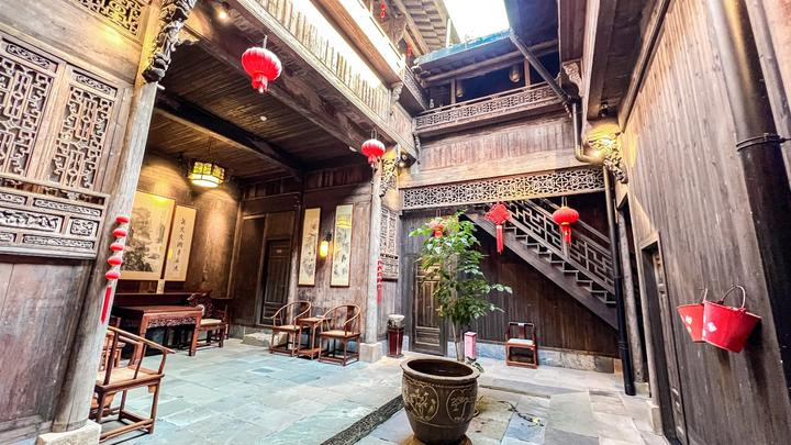 我曾经去过安徽黟县和江西婺源县,沉鱼落雁、闭月羞花如果是对这两地的形容词,那么深闺小姐一定是对歙县的形容,倾国倾城才华横溢,低调奢华。这是我第一次来徽州文化发源地的歙县,它也是徽商、徽菜的主要发源地,是文房四宝之徽墨、歙砚的主要产地,先后被授予“中国徽墨之都”“中国歙砚之乡”“徽剧之乡”“中国牌坊之乡”等荣誉称号。徽州古城、瞻淇村、许村、棠樾牌坊群,谢裕大茶博馆,呈坎古村、唐模古村……真想就这样一直猫在古徽州……因为这里有太多的人文故事,太多的民俗文化等待我们去一一解锁。古徽州行程:D1 抵达歙县,入住徽州古城九月徽州民宿,游览古城。D2 胡开文徽墨厂,古城南谯楼品茶及徽剧欣赏,午饭后打卡徽州历史文化博物馆、瞻旗古村渔灯表演。D3 古城老虎灶早餐,许村、老虎鞋制作,棠樾牌坊群、新春写对联,谢裕大茶博馆围炉煮茶,呈坎古村,入住唐模古村法国家庭旅馆。D4 唐模古村、米果制作,下午返程。徽州古城在来徽州之前,很多时候我会将自己带入戏,幻想着某天某个时刻,我一脚踏进古徽州的山水国画之中,远处是连绵精致的马头墙,这时走出一位妙龄女子,撑着纸伞,对我回眸一笑,对了,这就是我想象中,徽州的倾国倾城。其实在小时候的记忆力,徽州就是《橘子红了》里的高墙大院,是封建礼教,是男尊女卑,无可否认这是古徽州文化的一部分,但这里的问候底蕴非常深厚,也是这些历史和文化,让我们今天一次次的来到古徽州探索。日月轮回,古徽州还是那座古徽州,只是城里的人们已然走进了21世纪,古徽州已然有了新的模样。徽州古城始建于秦朝,自唐代以来,一直是徽郡、州、府治所在地,故县治与府治同在一座城内,形成了城套城的独特风格。从停车场进入古城,首先出现在我们眼前的便是南谯楼,始建于隋末,是古代夜间向人们报时的地方,打更的鼓声就是从谯楼传向四面八方。南谯楼连着古城墙,三重三开间,高约20米,宽约15米,进深约10米,砖木结构,悬山顶,重檐高脊,紫墙青瓦。下为门厥,左右各有木柱13根,每根柱围1米余多,每柱均呈10度左右斜倚墙壁,用以支撑大梁。南谯楼城楼上,可以品茶欣赏徽剧,这也是我第一次接触徽剧,国家级传承人坐镇台中,抑扬顿挫娓娓道来古徽州的那些往事,声音起落之间,将徽州人的喜怒哀乐表现的淋漓尽致,激情处酣畅,动情处感人至深。城墙上不失为一处在高处欣赏古城风采的好地方,通过一个小门来到了徽州府衙,这座府衙本来是建于元末明初,如今我们看到的是修复后的,但确是按照原工艺、原材料、原规制的模式修复,整体建筑气势雄伟,规模庞大,体现了徽派建筑的精髓,值得细细品味一番。徽州历史文化博物馆在徽州古城南谯楼对面有一栋崭新的徽派建筑,徽州历史文化博物馆,作为一个博物馆控是无法拒绝的。整个博物馆建筑白墙黛瓦,俨然是古徽州的一座豪门大户,但其实,这里确是一座艺术的宫殿,是古徽州历史的缩影,是灿烂夺目的徽州文化世界。整个建筑大气但又不失清雅,一共有三层展馆,地面以上有两层,地面以下有一层,一共分“天下徽州”、“遥忆徽州”、“寻根徽州”、“秋兴徽州”、“梦里徽州”五大板块,展陈面积4000平方米,展出物件1530件,并设有藏品库区、陈列展区、技术管理区、文物研究区和观众服务设施等,可谓是非常丰富了。徽州文化源远流长,经历了从"三天子都" 、"蛮夷"之地,属吴、越、楚 秦置黟歙,新都郡,新安郡 ,歙州的漫长历程,成就了丰富的文化体系,成为我国三大地域文化之一。分别包含了经、史、哲、医、科、艺等诸多领域,徽派建筑、徽州四雕、徽州教育、徽派盆景、新安理学、新安画派、新安医学影响深远,古今中外的学者们纷纷前来发幽探奥。胡开文墨厂在我的旅行生涯里,古徽州一直是放在心坎上无法抹去的向往地,因为这里的文化底蕴太浓厚,无法通过一次旅行来了解到全部,但起码每去一次,就会有一次的收获,这次让我涨知识的,就是胡开文墨厂。歙县是古徽州其中一部分,也是徽墨和歙砚的发源地和盛产地,胡开文墨厂就是其中一个重要的传承工厂,中华老字号了,1915年的时候就获得过巴拿马万国博览会金奖,此后又在国内国际获得过多次大奖,非常厉害。走进胡开文墨厂一探究竟,烟入墨、描金妆点,文化、匠心于方寸徽墨间,炼烟、和胶、杵捣、成型、晾墨、锉边、洗水、填金、包装,每一步都是工人用手工打造出来的,这是一代一代手艺人的技艺,更是匠心精神,是文化的传承。每一道工序,每一分钟,工人们都非常专注,而专注,是制墨制砚的必要能力,我很佩服工人师傅的专注能力,也正是因为工人们的这行云流水的专业和专注能力,隔绝了尘世的喧嚣和浮躁,沉淀着,沉淀着,最终为我们呈现了一个个精美的徽墨和歙砚,流芳百世。瞻淇村,闹鱼灯在古徽州众多的古村里,瞻淇村可以说是比较小众的代表了,“瞻淇”这个村名总觉得很拗口,但是当你知道它的来源就不觉得了。在《诗经·卫风》中有“瞻彼淇奥,绿竹猗猗,有匪君子,如切如磋,如琢如磨”,瞻淇便是由此而来。整个村落是一句“枕山、环水、画屏”的原理建造的,典型的太师椅格局,主街并不算宽阔,两边密布着许多巷弄,纵横交错,分布均匀。一千三百年的历史长河,赋予了这座古朴小村庄很深厚的历史文化底蕴,保留完好的明清古建筑102幢,每一幢都堪称是