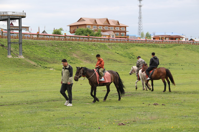 室韦小镇在晨光的笼罩下,显得格外宁静祥和。街道两旁是独具特色的木刻楞房屋,尖顶的设计、原木的纹理,充满了浓郁的异域风情。偶尔能看到三两游客在街头拍照,或是当地居民牵着马慢悠悠地走过,一切都像是一幅恬静的油画。