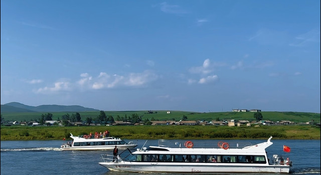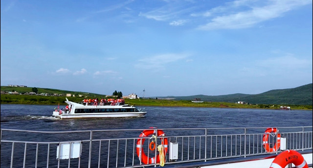 游船开始返航。我静静地坐在游船上,享受着这宁静而美好的时刻。微风拂过脸颊,带来丝丝凉意,同时也夹杂着河水的清新气息。看着两岸不断后退的风景,心中感慨万千。这次室韦界河游船之旅,不仅让我欣赏到了如诗如画的自然风光,还让我了解到了这里丰富的历史文化,更让我感受到了中俄两国之间那份深厚的情谊。