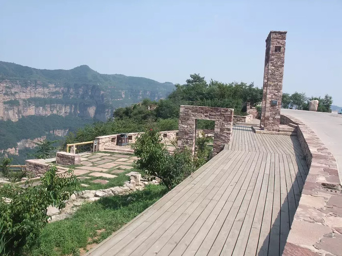 乘坐观光车游走于太行天路,犹如置身百里画廊,满眼望去,无处不是大气磅礴的国画山水长卷,深邃的峡谷、直立的岩壁,带给游客强烈的视觉震慑。结合山势山形,太行天路沿线设置有10余座观景台,临栏远眺,感觉心胸开阔、杂念全消。