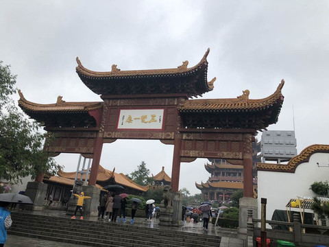 出发去了黄鹤楼。国庆期间来这里的人特别多。很多人排队去楼上。其实站到楼上登高望远,不过是看看武汉的全景,这个可以去高一点的酒店,去爬山看,人太多的时候就没必要排队了。