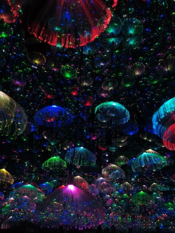 这个是最后看到的水母灯光展。因为加了好多颜色,我觉得和真正的水母已经有所偏离了,不过,即便如此,这里也是很好看的。