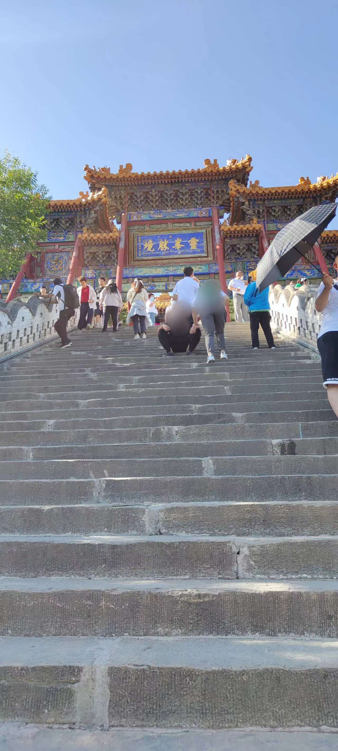 步行至黛螺顶登顶入口,差不多半个小时,绝对比开车快,看这几乎不动的车流,我直呼自己英明。从这条大智路的路碑开始,寻求智慧开启之路吧。1080阶石阶,无数人三步一叩,信念是要用汗水和毅力浇灌的,无论是修炼自己还是祈求神灵,都是在积累善因,值得赞叹。