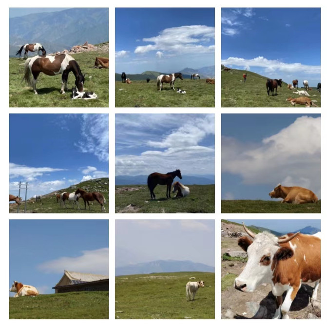 登上最高的北台,像是猛然跌入了天空之城。让人窒息、让人神迷!这是无垢文殊用来涤荡俗世凡心的沐浴泡泡吧。一头温柔的花牛跟着我,我掰下手上玉米粒给它吃,它扭头,执意舔舔我的手心,有点痒,我摸摸它的鼻梁,它眨眨眼睛,缓缓转身而去。