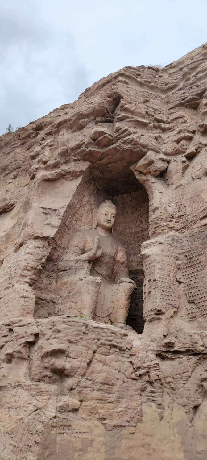 也许因为要去云岗石窟吧,早起落了一点雨,菩萨保佑,居然也就仅仅落了几滴,真心的说这里是四大石窟最亲民的了,首先完整度较高,其次可以近距离观看,如果还没有观过石窟的人,这里真是观感最好的一个选择了。
