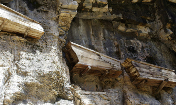 看到这些悬挂在悬崖绝壁之上的棺木,我在想,也不知道经历了多少年的风吹日晒了,迄今为止依然保留的这么完好,不得不说真是一种奇迹啊,这里面其中有很多的岩棺,根据考古学家根据棺木中的陪葬物文物的判断,最早的竟然属于西汉时期的物件,算起来迄今也有2000多年的历史了,这真是太不可思议了,古人是如何做到这一壮举的呢?原来啊,这些岩棺所使用的木材都是上好的楠木,樟木,可以起到非常好的防腐防虫的作用哦,怪不得啊!