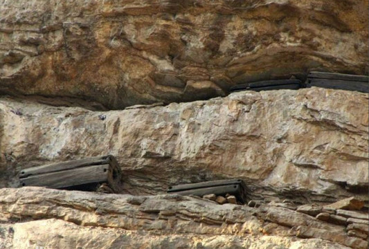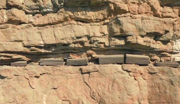 那么另外一个问题也来了,众所周知,在古代的科技实力远不如今,古人们是究竟如何做到的将这样一个个的棺椁悬挂到了岩壁之上呢?一时之间众说纷纭,议论纷纷,我想那时候应该还没有定滑轮或者动滑轮吧,还有的人则说是由于之前这里的水位较高,人们乘船把棺椁放到崖壁之上,反正各种说法都有,但是我比较倾向于下面这个解释!