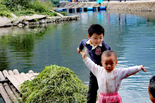 大叔的孙女,给她拍了几张照拷贝送给他啦,小伙还和小妹妹分享了他带的零食,给了大叔50元竹筏钱,大叔不肯收,说“之前同意我们去玩没打算收费的”,几番推迟后大叔不好意思的收下了,他硬是留我们一起吃饭,我们婉言谢绝,好心人!!!