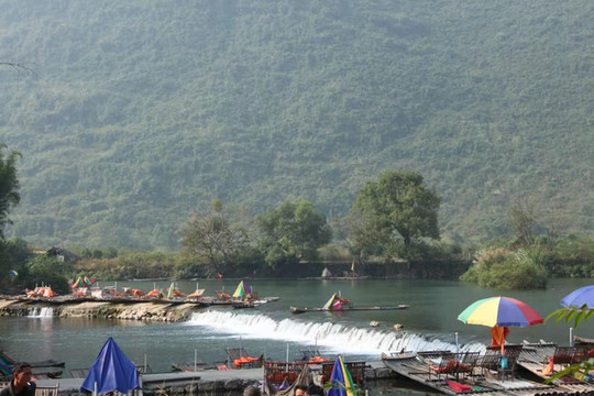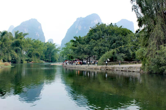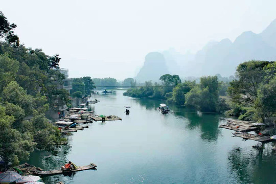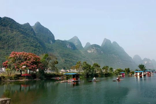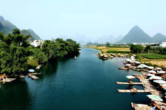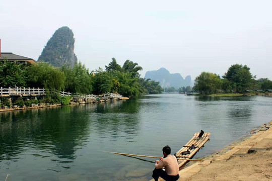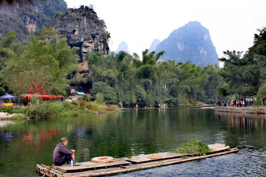 遇龙河真的很不错,到处都是坐竹筏的,坐不坐在个人。
