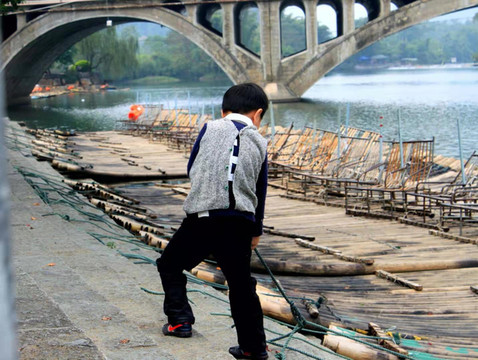 小伙一直吵着要做竹筏,我一直没让他坐,我想带他体验不一样的坐竹筏的感觉,
