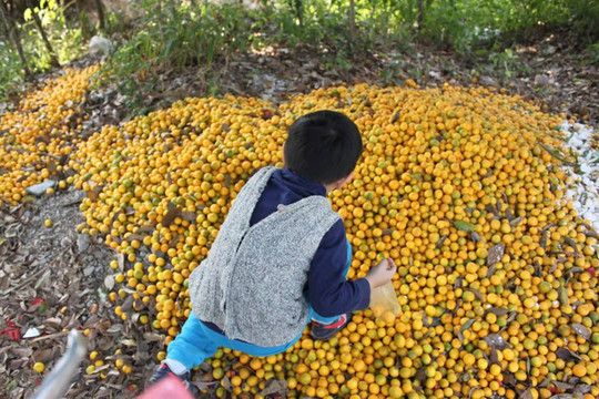 不知道之前发生了什么,只发现路边一堆像是翻车了洒在地上的金桔,于是,你们懂的,,嗯嗯
