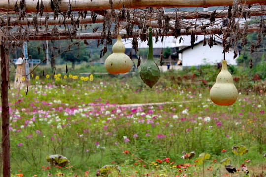 一家葫芦店让我们停下了-----闷葫芦创意......,不得不感慨他们的创意,小小葫芦竟然能把葫芦雕刻成美人鱼、吊篮各式的创意作品。