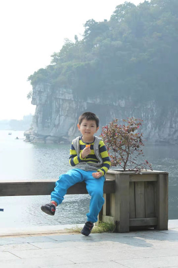 看看图片,我还背着行囊和他一起逛象鼻山,他貌似很累,心情一下子变得惆怅了,失去了先前的欢快。