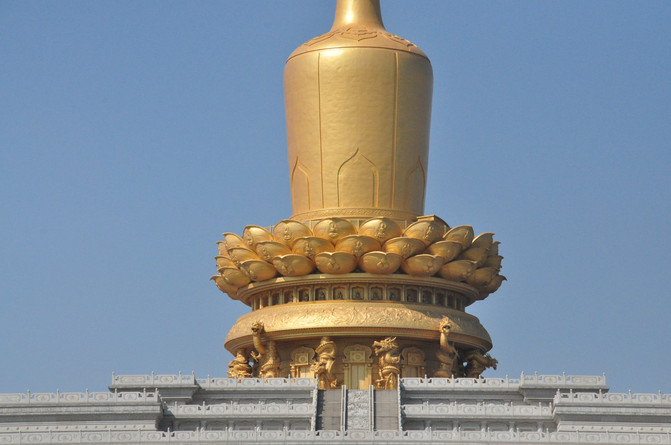 兴隆文化园主体建筑雄伟、气势恢宏、金世尊安然屹立在城市之巅。从金碧辉煌的舍利金瓶、寓意国泰民安的天王护法,到气势如虹的灵光宝殿、吉时升起抛洒甘露的观音水法,再到暗藏神秘地宫、出土珍奇国宝的千年古塔兴隆塔,精美绝伦的现代艺术创作与庄严悠久的历史积淀相互辉映。