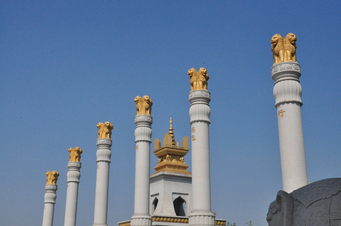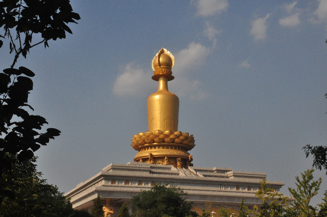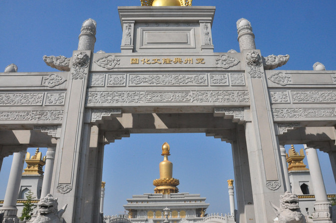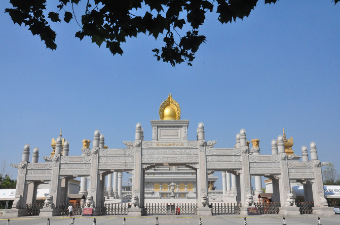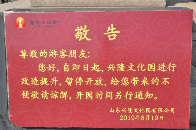 我们莅临的是文化园的西区,就在兖州市区中心,距火车站很近。下午的时间本可以在此消磨打发,可是没想到该景区自去年9月至今,不知何故,关门闭户,不予开放。我们只能在大门外拍拍照,眼瞅金碧辉煌的殿堂,却不能进入观赏,何其欲取不得之憾。