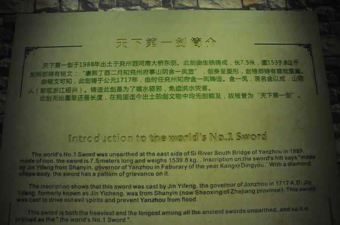 馆内陈列了260余件精品文物,展示了从商周时期的"索氏器"、"羊式器"以及各个时期的铜佛、铜镜,到明代"兖府文庙祭器"、鲁王世系墓中的金银饰品及历朝历代的瓷器和精美造像石刻。其中的辟雍砚、绞胎瓷枕和三彩马是少见的精品。史前馆陈列了本市王因遗址、西吴寺遗址和龙湾店遗址出土的彩陶等160余件文物。还有天下第一剑馆,剑是清朝兖州知府金一凤为镇水祛洪,资款铸造的一把铁剑--镇水剑。该剑长7.5米,重1539.8公斤,举世罕见,被誉为"天下第一剑"。李蒂艺根馆,陈列了中国根艺美术学会副主席、中国根艺美术大师李蒂先生从自己几百件作品中挑选的最精美的捐献给家乡的150件艺根作品。石刻馆位于地下展室,有老子、孙子的汉画像石,有唐碑、唐墓志及北齐佛教造像,特别是北齐沙丘碑是李白寓居兖州20年最有说服力的史料。