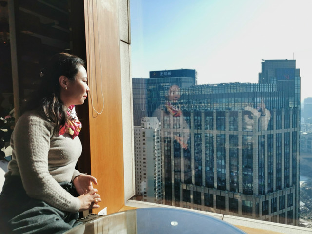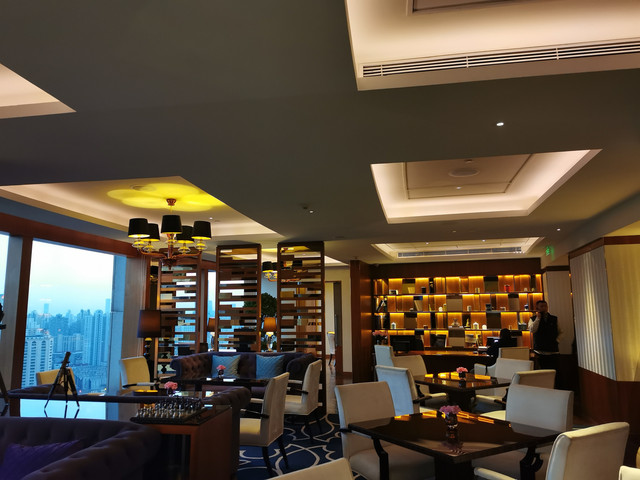 处于高层的行政酒廊,可以看到美丽的城市天际线,装修也比较大气