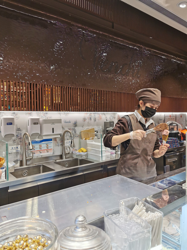 1878年Venchi诞生于意大利都灵,品牌名称来源于创始人的家族姓氏。主营意大利高品质巧克力、冰淇淋和热巧克力,一直以来以“让每一个人每一天都可以享受无比快乐的美好时光”为使命,坚持所有食材精选天然原料,不使用化学添加剂。所以他家的冰淇淋一直是深受人们喜欢,我们也加入了排队的行列。