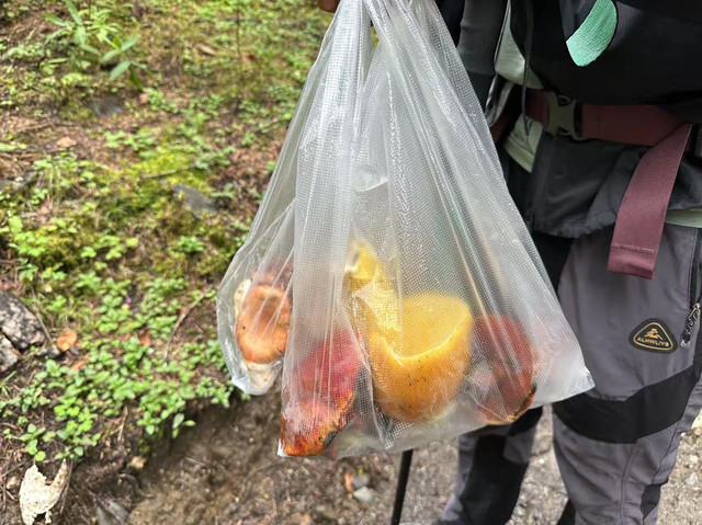 上午:因同行有三位小朋友,未走全程冰湖徒步(当地的向导建议适合有经验、体力好的人),选择带孩子在沿途游玩,爬到垭口处赏景。若刚下过雨,沿途有蘑菇可采摘(仅体验,不建议食用),当天徒步约7公里。