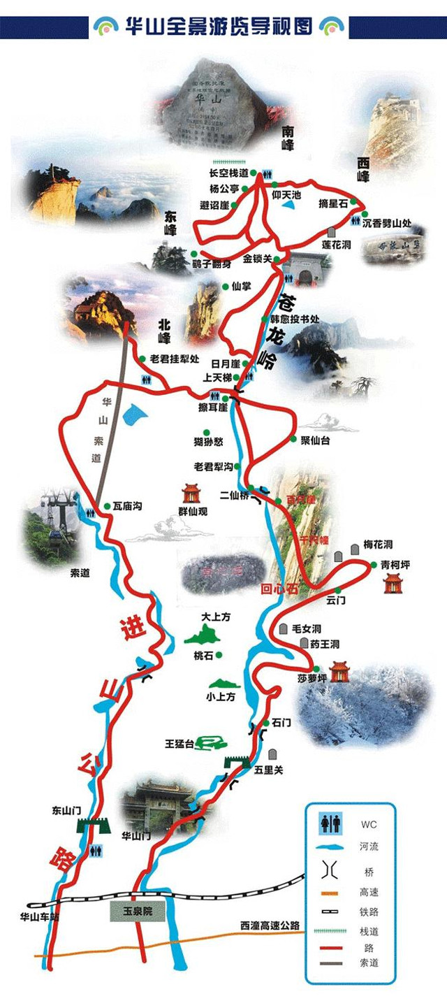 好多爱人在问路线安排,我这次其实是直接从张家界坐火车到的华山,如果重庆出发的话有直达华山站(普通火车站)的列车,比较方便,还有个华山北(动车站,西安到华山北,灰常多的和谐号,简直太方便),华山北比华山站稍远,打车均可讲价。我们是全程徒步上山,从玉泉院开始经北峰中峰东峰南峰西峰,再从西峰到北峰,主要想体验盘北峰索道,索道没得我想象中那么险,如果各位粉丝选择索道的话最好是西峰索道上北峰索道下,这样节省体力不累,从高到底下坡路居多,还有大家都熟悉的长空栈道(在南峰南天门内),我个人觉得鹞子翻身(东峰住宿点的后面)更刺激些,胆子大的都可以去尝试,酸爽嘚很。有些路真的只能用脚掌支撑,还有些也确实需要手脚并用,能不带相机还是别带,像我带了也没拍多少,确实爬山的时候都是精神集中起的,这次没去走智取华山道,确实搞不赢了,也是超级费体力的一个爬山线,有兴趣的可以去试,这个路线的上山入口在华山北峰索道上站旁边,景区摆渡车停车站对面,下山路口在北峰索道下站旁哈哈哈哈,期待各位爬残,爬残。PS:我觉得没得爬峨眉山累,就是陡得很。