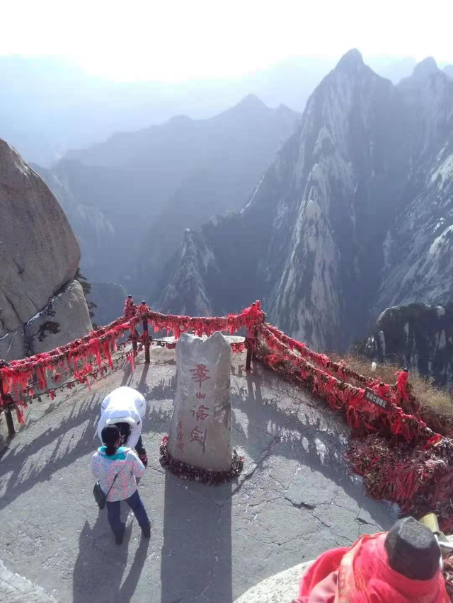 当我在北峰第一次看见,华山论剑石碑的时候,特别兴奋,准备去合影一张,想着瞬间变永恒。但直到我看见每个山头都有华山论剑的石碑后,感觉自己像个傻子,哎。但是,如果再去华山,我还是会在华山论剑石碑旁边再去咔嚓一张并且比个舞剑姿势,不然那不是完美的华山之行,嘿嘿。